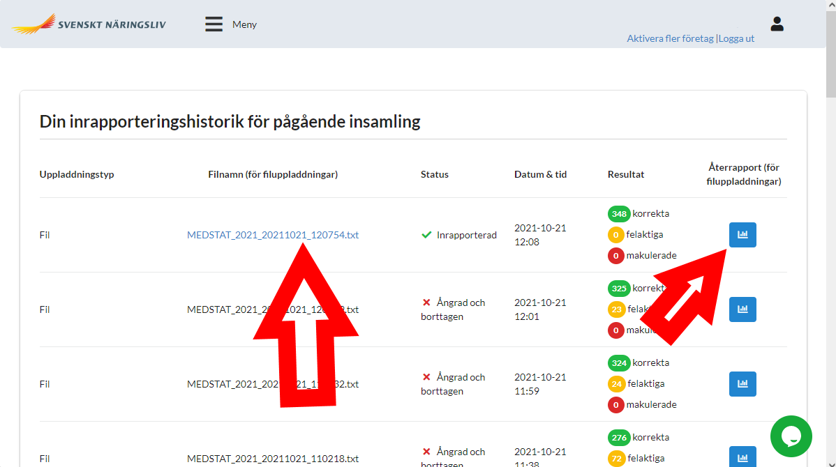 För att kontrollera vilka fel som finns i din inrapportering, gör följande: